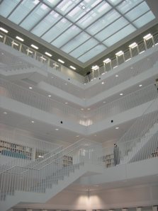 Letzte Woche Montag eröffnete die Stuttgarter Stadtbibliothek am Mailänder Platz nach drei Jahren Bauzeit ihre Portale. Die Metaphern für den Bau des koreanischen Architekten Eun Young Yi sind vielfältig: Medientempel, Büchertempel, Bücherwürfel, aber auch prison library (aus einem meiner Interviews zu Bibliotheksarchitektur in Oxford), das neue Stammheim (gemeint ist die JVA Stuttgart) …